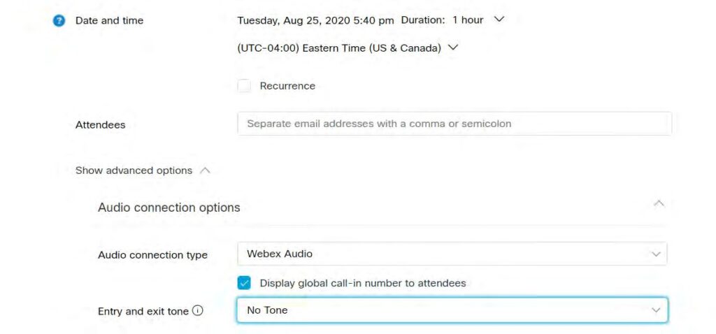 - From the participant list described above you can mute, unmute, some or all of the participants in the room. You can also set the meeting to mute participants on entry.