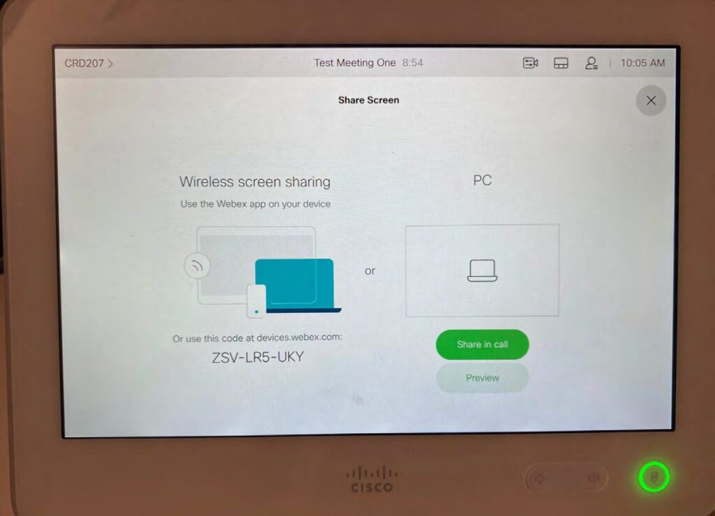 - The computer on the desk is connected to the device. Choose “Share in call”. You will be sharing the screen you see on the PC/Wacom in front of you.
