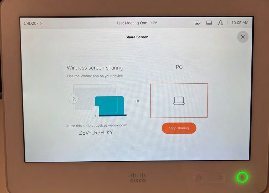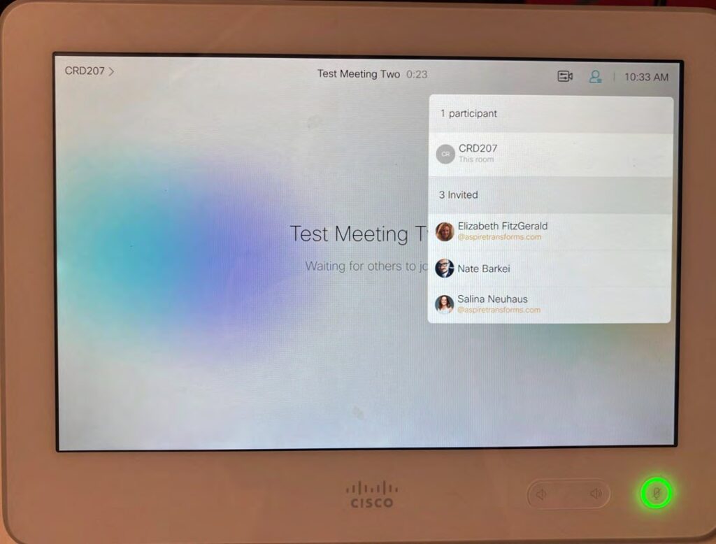 - If everything is ready you should now see the room kit listed in the middle of the screen instead of your own video.