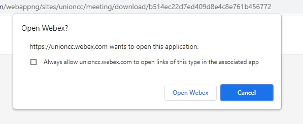 - After you click Start a window will pop up and you will be asked if you want to open Webex.