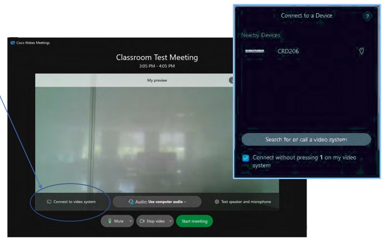 - Then select the name of the room you are currently teaching in (in this example it is CRD206) and click it.